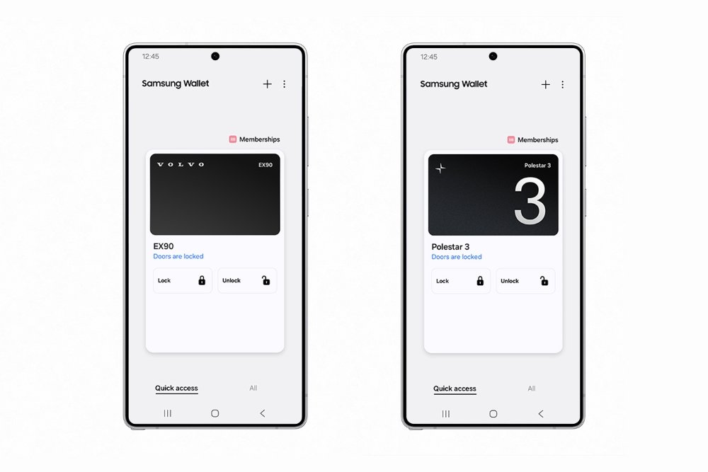 De digitale sleutelfunctie van Samsung voor sommige Volvo-voertuigen zal beschikbaar zijn vanaf deze maand in Europa, Noord-Amerika, Latijns-Amerika en Azië[6]. De digitale sleutelfunctie van Samsung voor sommige Polestar-voertuigen wordt deze maand gelanceerd in Europa, Noord-Amerika en Azië[7].